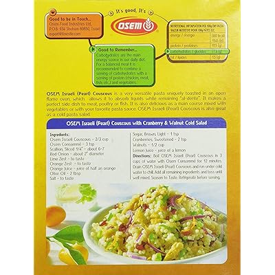 5.0 star rating 2 reviews. Trying to find osem north african couscous 10 pound bagb002yr87rk? Osem couscous original plain 12 oz. Osem israeli couscous can quickly become an obsession! Dry uncooked couscous dietary and nutritional information facts contents table.